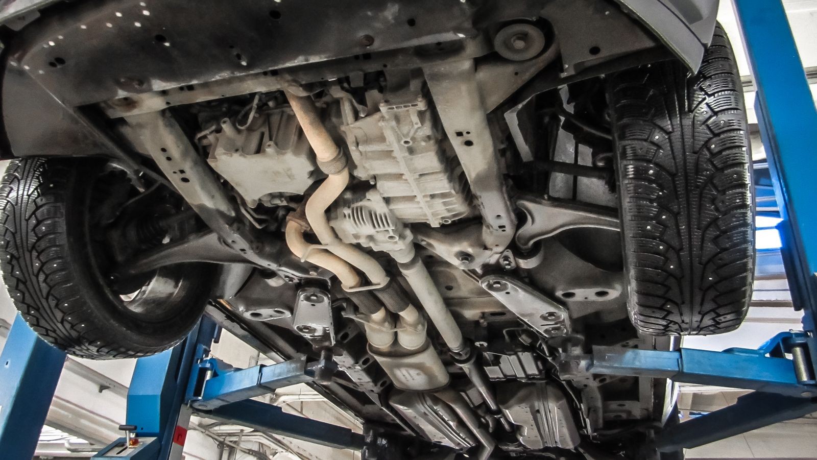 - Установить автомобиль в неподвижном состоянии на яме или подъемнике.