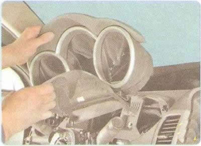 Для снятия декоративной панели приборов выполните следующие операции.