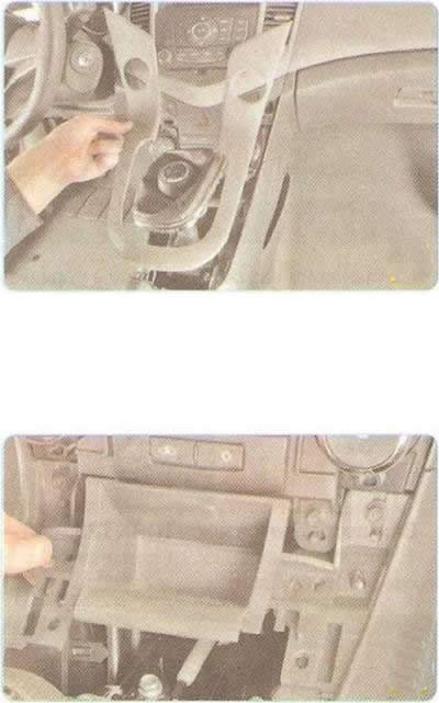 6. Снимите декоративную накладку тоннеля пола, преодолевая сопротивление ее фиксаторов (см. «Снятие и установка облицовки тоннеля пола»).
