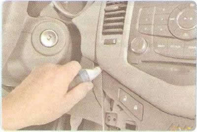 10. Снимите панель управления системой отопления, кондиционирования и вентиляции салона (см. «Снятие и установка блока управления системой отопления, кондиционирования и вентиляции»).