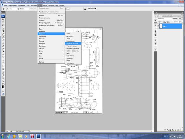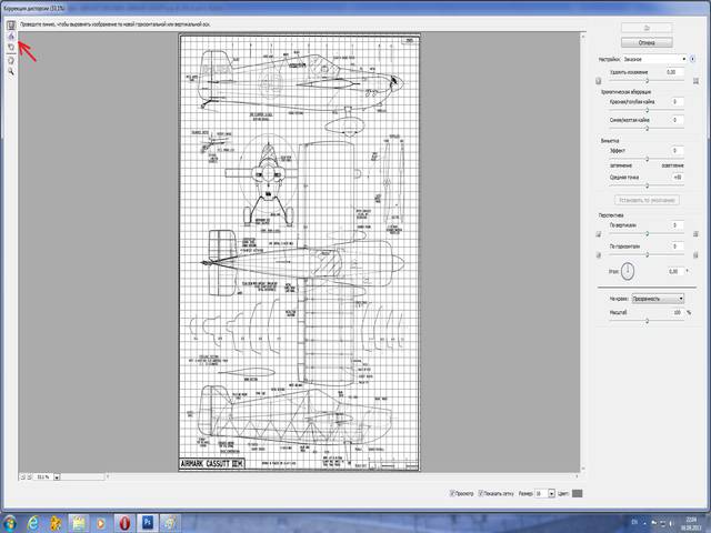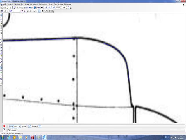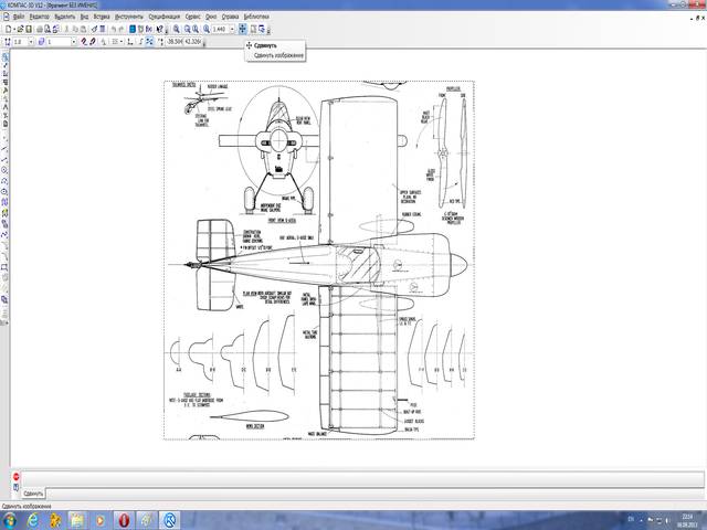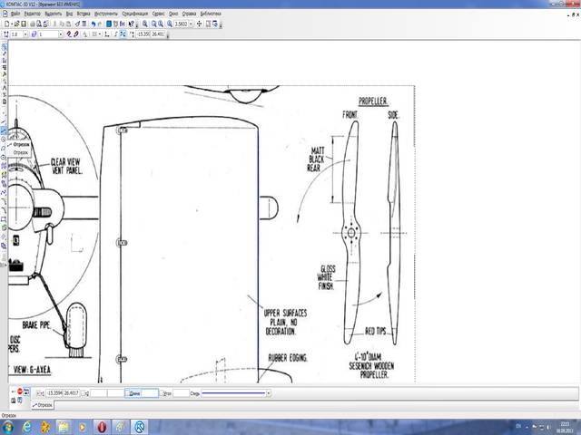 Для того что бы получить чертеж нам понадобится фоторедактор (я пользовался Фотошопом) и САПР Компас 3D. Сразу хочу предупредить что бесплатная(LT) версия не позволяет экспортировать рисунки, поэтому пришлось искать портайбл версию. Все остальное можно делать и в бесплатной версии. Статья из журнала у нас в фомате PDF, поэтому отрываем ее в фотошопе и выбираем нужную страницу. Затем идем в меню Фильтр > Искажения > Коррекция дисторсии. Зачем это нужно? Не каждая картинка претендующая на чертеж имеет осевые линии параллельные (перпендикулярные) краям листа,поэтому что бы избежать дальнейших трудностей правим рисунок. Выбираем инструмент Выпрямление (отмечен красной стрелкой),теперь проводим линию вдоль осевой(я проводил по передней кромке крыла) и видим что программа повернула изображение так,что все линии стали паралельны сетке. Далее сохраняем результат в JPG или PNG кому как нравиться,и последующие действия производим уже в Компасе. Я еще разделил рисунок на части что бы было легче работать и сохранил лишь часть рисунка с видом сверху. Открываем Компас,выбираем Новый документ и Фрагмент Далее открываем меню Вставка и выбираем пункт Рисунок(этого пункта как раз нет в LT версии) Во всплывающем окне выбираем наш рисунок и вставляем. Далее опять идем в меню Вставка > Слой и в Менеджере документа кликаем создать новый слой. Далее ОБЯЗЯТЕЛЬНО нужно выполнить пару действий. Я на этом слегка обжегся. 1 установить красный крыжик на Слой 1 и 2 Закрыть замок на системном слое,при этом синим должна быть подсвечена строка «системный слой» Что бы двигать и изменять масштаб изображения нужно кликнуть на инструмент крестик со стрелочками и когда курсор примет вид значка зажав левую кнопку мыши мы двигаем изображение,а колесиком изменяем масштаб. Для отрисовки нам понадобятся минимум два инструмента — Отрезок и Скругление. Выбираем инструмент Отрезок на панели слева(можно так же через меню Инструменты> Геометрия>Отрезки>Отрезок и начинаем обрисовывать прямые линии на рисунке Внизу экрана есть всплывающее окошко Стиль. В нем выбираем тип линии. Но кроме прямых линий на будущем чертеже должно быть полно кривых,для их отрисовки воспользуемся инструментом Скругление. На фото мы видим два синих отрезка между которыми должна быть кривая,кликнув на инструмент Скругление и задав нужный радиус кликаем по отрезкам между которыми будет проходить скругление. Если радиус не подошел делаем шаг назад Ctrl+Z или Редактор> отменить и повторяем опять с другим радиусом. После того как обвели весь рисунок смотрим что получилось: Вставка>Слой и в менеджере документа выключаем «лампочку» в системном слое (или правой клавишей по слою и Погашеный) Получаем вот такое изображение. Затем с ним можно делать все что угодно, скопировать на новый чертеж, отмаштабировав. ЗЫ предвидя язвительные высказывания хочу заметить что я никакой не знаток Компаса и время наработки в этом редакторе у меня менее 10 часов. Но наступив неоднократно «на грабли»,о которых в интернет уроках ни слова решил сделать такое мини пособие для начинающих как и я и у которых отсутствует время на прочтение трехкилограмовых бумажных самоучителей. Чертеж еще далеко не закончен,над ним работать и работать. В итоге планирую на выходе получить чертежи бальзовой копии (полукопии) размахом примерно 1м (1:5) Ка