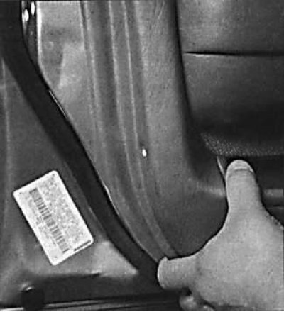 СНИМИТЕ ЗАДНИЙ НАРУЖНЫЙ УПЛОТНИТЕЛЬ ПЕРЕДНЕЙ ДВЕРИ