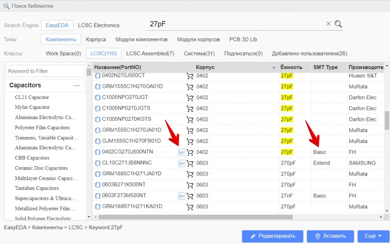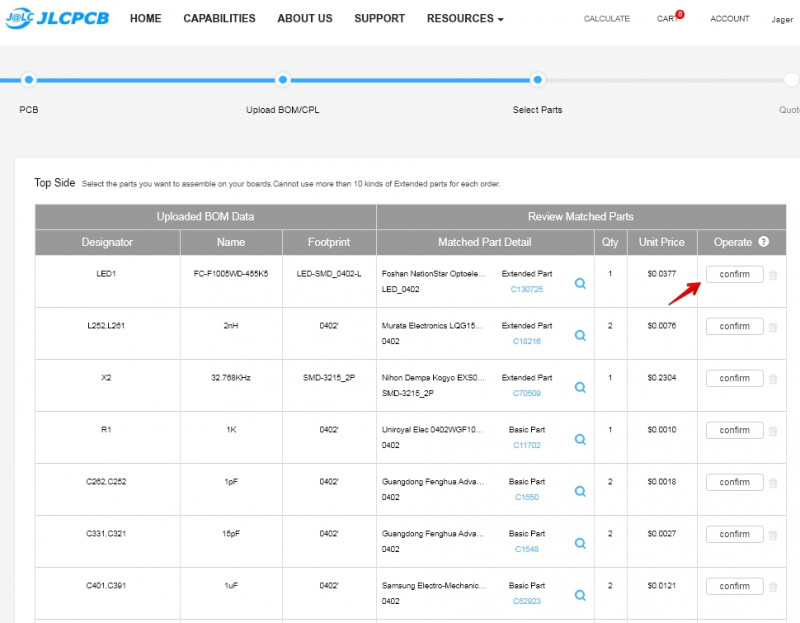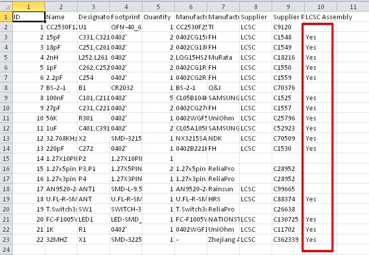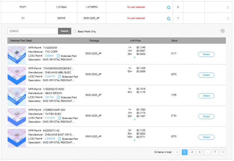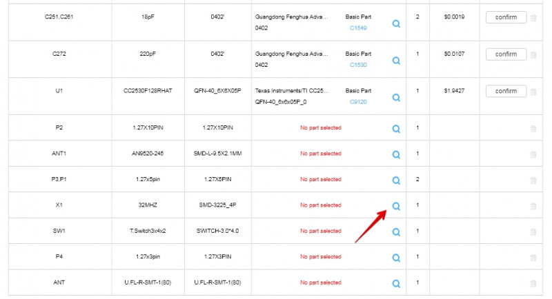 Детали, которых нет в библиотеке деталей JLCPCB SMT, не будут размещены на вашей доске.