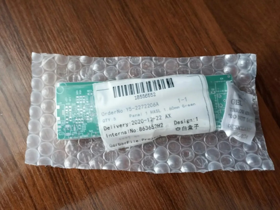 5. Доставка — всегда заказываю самым дешевым вариантом — авиапочтой. Заказ почти всегда добирается за 2-3 недели. Иногда платам присваиваются трек номера, а отправка проходит только через 3 дня (самое долгое для этой доставки). Видимо набирают какое то количество и потом скопом отдают на почту. Один раз заказал доставку EMS, нужно было срочно, а получилось дольше, чем авиа почтой — 4 недели. 4 дня на изготовление, 6 дней платы ждали отправки, остальное время ушло на дорогу, так что больше не переплачиваю. Маленькие платы упаковывают в простые пакетики, а что побольше и по сложнее — в вакуумной пупырчатой пленке с силикогелем. Все складывают в коробку, которые частенько приходят чуть сдавленными, но это уже скорее к почте России.