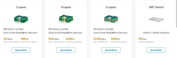 Тоже решил опробовать данный сервис, тк привлекла цена и качество, судя по обзорам и отзывам. На работе печатаемся в резоните, но печать для себя там дорого, ибо там ещё подготовка к производство дорогущая + та же доставка… А здесь достаточно демократичная стоимость 4-ех слойных плат 13$ при размере 50х50, которые в домашних условиях слишком много времени съедят + химией при металлизации надышишься ещё. А 4-ех слойки незаменимы либо при очень компактном монтаже, когда несколько цепей питания или желания попробовать приобщиться к bga. При заказе 2-ух слоек обратил внимание на то, что 2$ за 10шт распространяется только если плата ровно вписывается в 10х10см. При отклонении размеров либо фрезеровке краёв за 2$ изготовляют только 5 плат, а за 10 штук хотят уже 5$. При других размерах, например, 5 2-ух слойных плат 24х4 см обошлись в 7.3$. Ещё обратил внимание на то, что для мелких корпусов типа ttsop20 у stm8 они не делают маску между дорожками (судя по их просмотрщику), а на 4-ех слойке делают. По времени изготовления — укладываются в границы и 4-ёх слойную плату сделали за 4 дня. Ещё понравилось то, что во время изготовления плат если появилось желание добавить ещё одну, то можно значительно съеэномить, например, добавление +5 2-ух слойных плат прибавило к доставке около 1$.