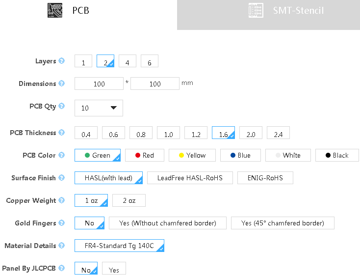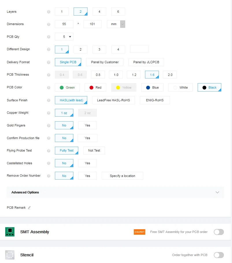 PCB Qty — здесь указывается количество плат, которое вам требуется. Заказать можно от 5 до 80.000 штук.