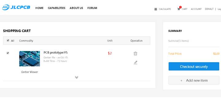 Да, на тот момент я знал о существовании JLCPCB, но закинув туда архив с гербер-файлами и получив расчет стоимости, цена оказалось выше чем у DDAYA PCB Store. Поэтому выбор был очевиден. Однако все течет, все меняется. В сети и на ютубе появилась куча статей/видосов о JLCPCB, этакий рекламный штурм. И я, заканчивая очередной проект, решил попробовать закинуть гербер-файлы в оба магазина. И о чудо, DDAYA PCB Store заломил цену аж на целых 7$ больше чем JLCPCB, и это с учетом их бесплатной доставки против платной у JLCPCB.