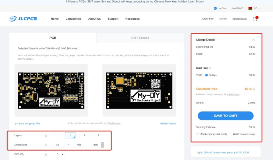 JLCPCB. Мой опыт заказа плат.