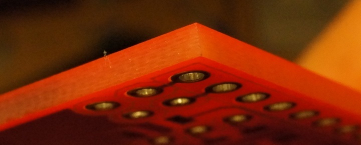 Шелкография попадается раз-через-раз, то принтерная, то трафаретная (принтерная с черной маски например — отваливается). Один раз прислали платы, где не была соблюдена параллельность сторон, одна была кривой а-ля экспонента. Скорее всего на краю листа была и при резке листы были согнуты. QA как то это пропустил.