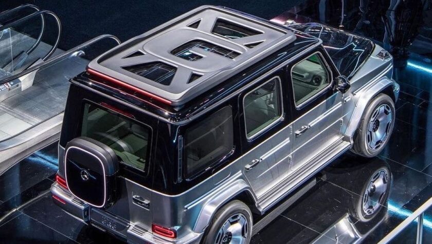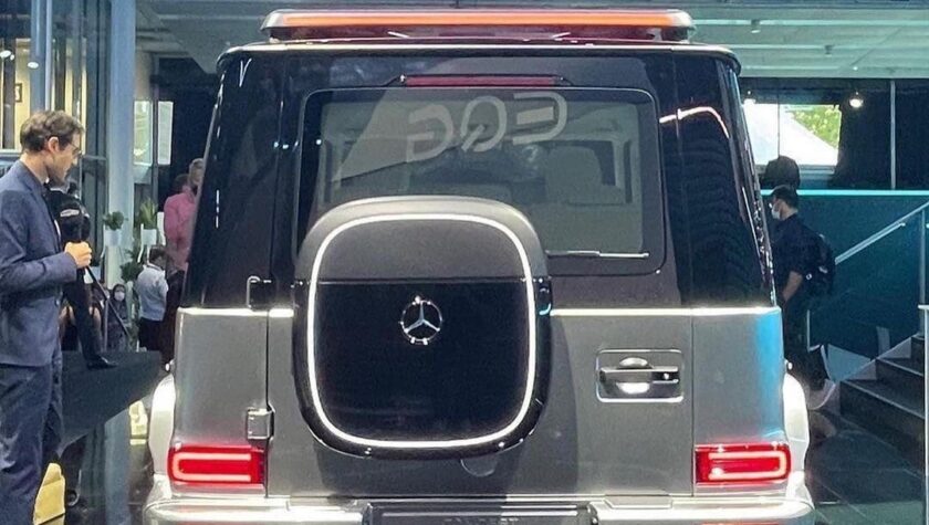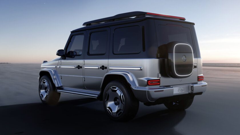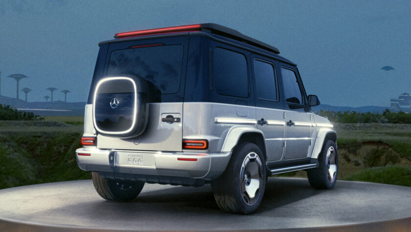 Конечно, Mercedes Geländewagen даже в электрической версии должен сохранять свой «армейский» внешний вид с прямыми линиями кузова, характерной формой остекления и круглыми фарами. Обязательным атрибутом остаются огромные колеса, подчеркивающие большой клиренс, а также почти горизонтальные линии крыши и капота.