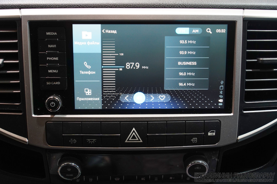 В своем старом Соболе 4х4 музыку я включал пару раз, потому что звучит она отвратительно, подключить ничего нельзя, да и слишком шумно в салоне. В новом Соболе NN все иначе: шумоизоляция и инкапсуляция узлов автомобиля (ручник, КПП) позволили уменьшить шумы в салоне, а значит новое ГУ со всеми возможными “наворотами” можно будет не только использовать для навигации, но и для прослушивания музыки или просмотра кинофильмов. Вот уж действительно будущее “ГАЗели”.