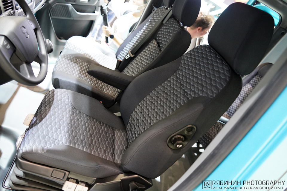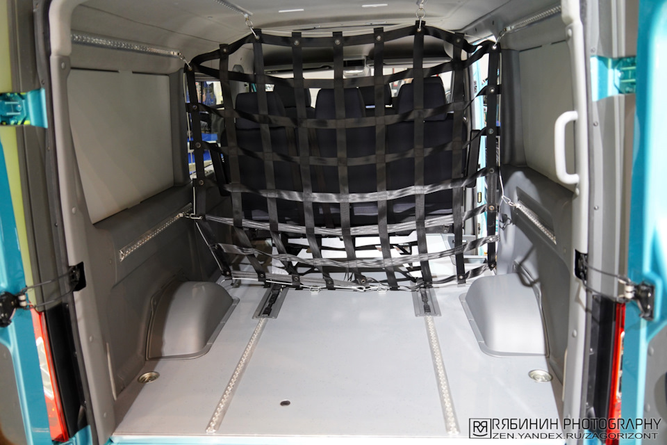 Задний диван-трансформер пока что только “концепт”. Нет окончательного решения, будет ли это вариант с Некста или что-то новое, более комфортное. Поэтому на оснащение пассажирской и грузовой части салона пока не стоит пристально смотреть, но скоро мы увидим его уже в окончательном варианте. Идеи, реализованные в концепте, в части “мягкой перегородки”, мне лично нравятся на 200% и даже больше.