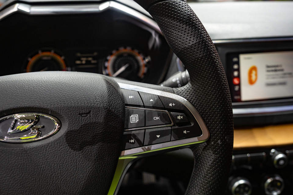 Vesta получила кнопку запуска двигателя, появился новый руль с удобными кнопками, французские датчики света и дождя заменить еще не успели, подогрев сидений – снова «одноступенчатый». Вместо контроля от кроссовера Renault Arkana установлен «кондиционер с тугими и люфтящими рукоятками».