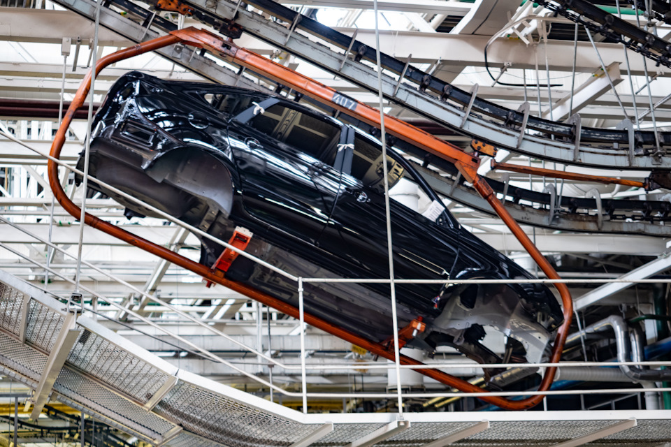 конвейер, финальный участок новая машина выезжает каждые несколько секунд