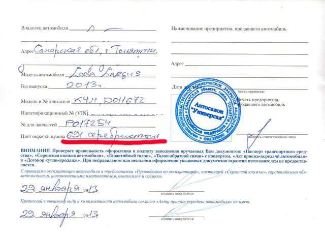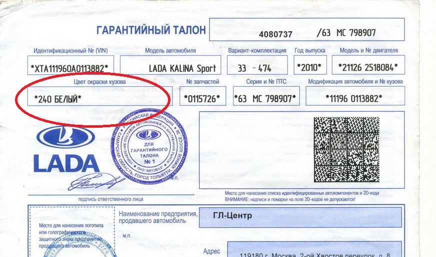 Точное название цвета автомобиля Лада указывается в сервисной книжке или гарантийном талоне на машину.